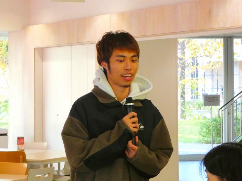 学友会 中央委員会 議長の田中翔大さんより学友会の現状について報告があり、学生主体の活動や課題について共有されました。