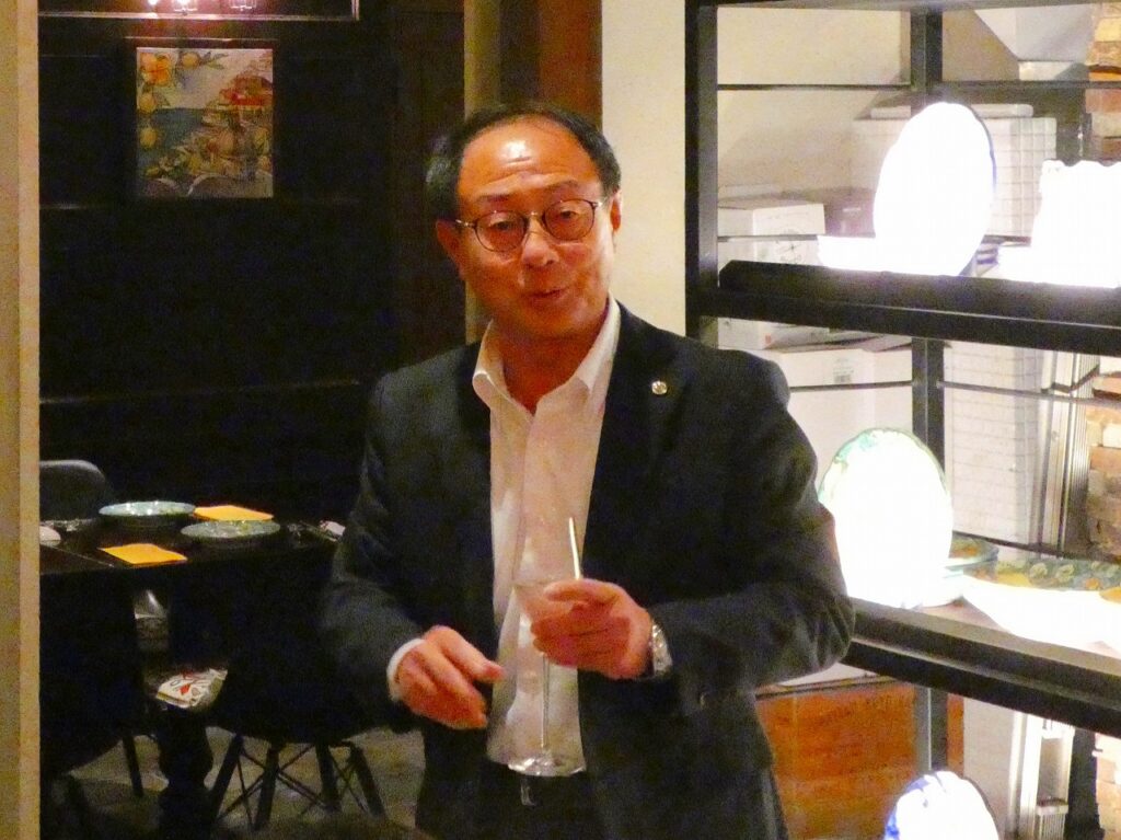 次に、場所を移動し、烏丸御池駅近隣の昭和50年(1975年)開業の歴史あるホテル「ホテルギンモンド京都」の1階にある「ダニエルズアルバ」にて懇親会が開催されました。
