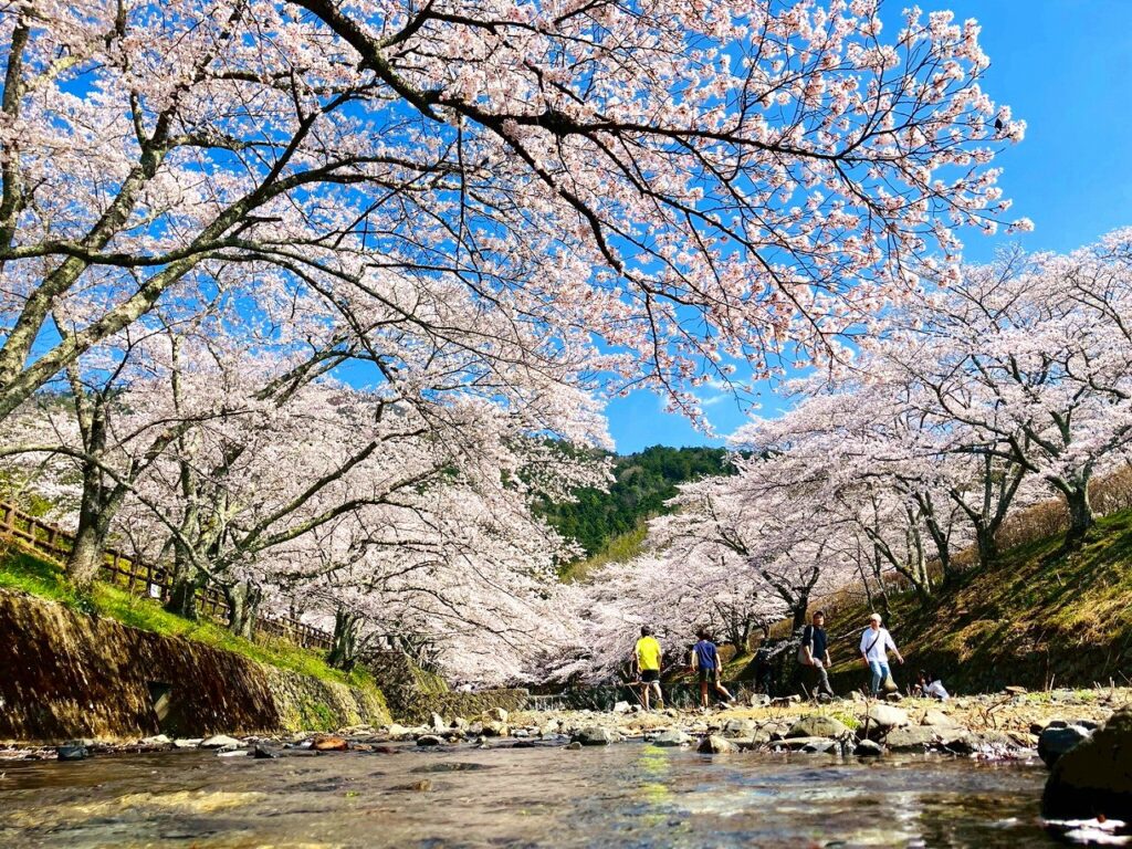 七谷川周辺は約1kmにわたって約1500本の桜が咲き乱れる桜並木が続き、丹波地方随一の桜の名所として連日花見客が訪れるそうですよ。