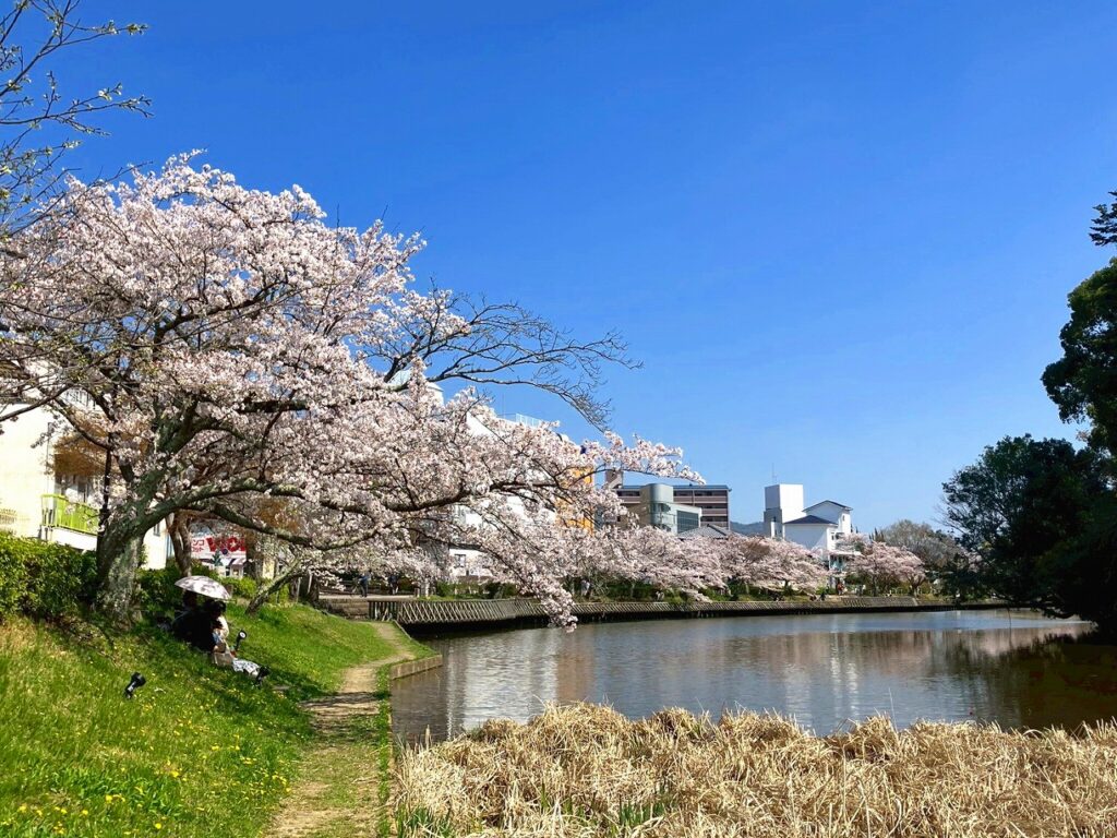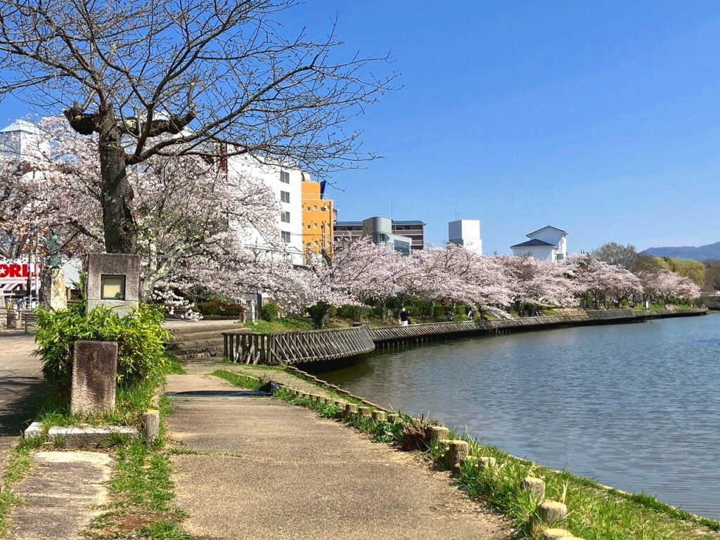 そして、JR亀岡駅の南側位置する、戦国武将・明智光秀が築いた丹波亀山城の北側の外堀の跡である南郷池を中心として整備された「南郷公園」の桜。