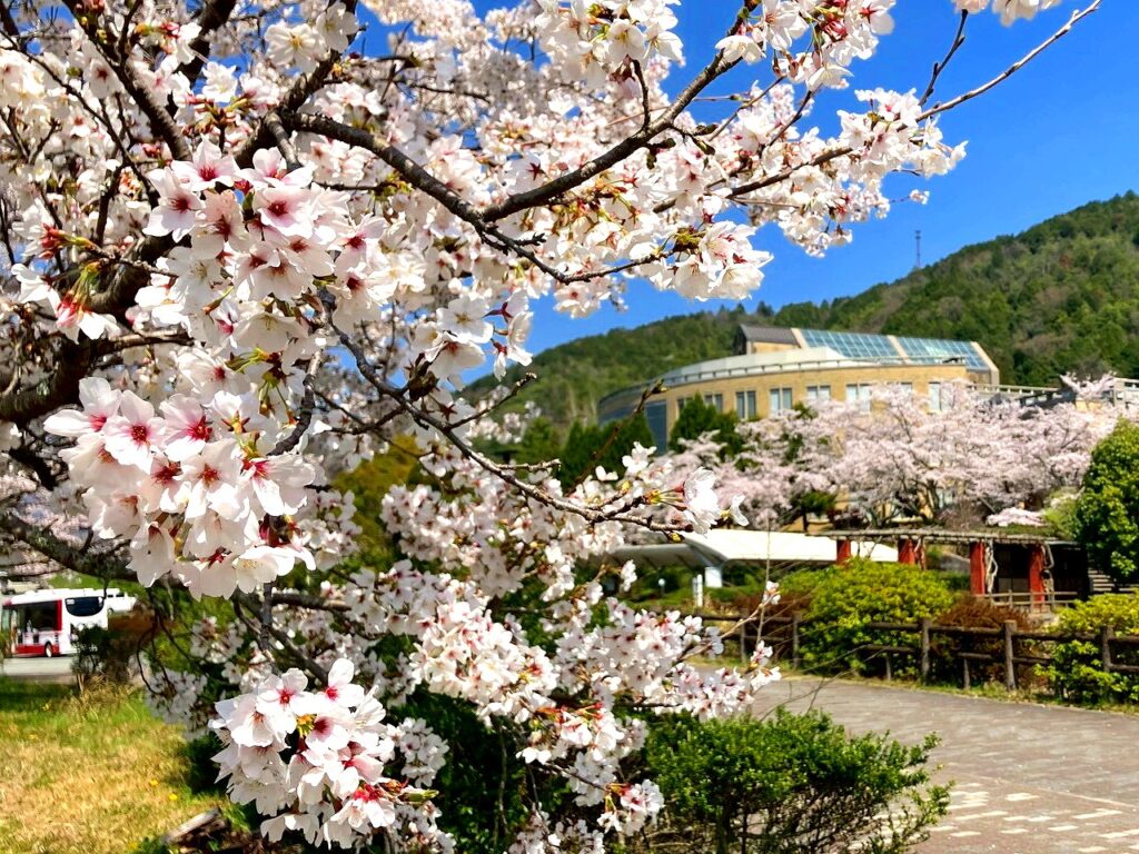 私たちの母校には、第1期卒業生の皆さんが卒業記念に寄贈された100本の桜(ソメイヨシノ)が、50年余の年月を乗り越え、毎年、春には京都亀岡キャンパスで咲き誇っています。