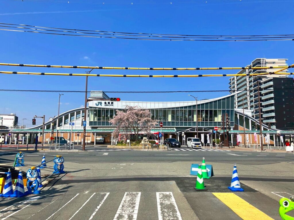 学外の思い出の場所といえば、通学で使った「JR亀岡駅」の桜。