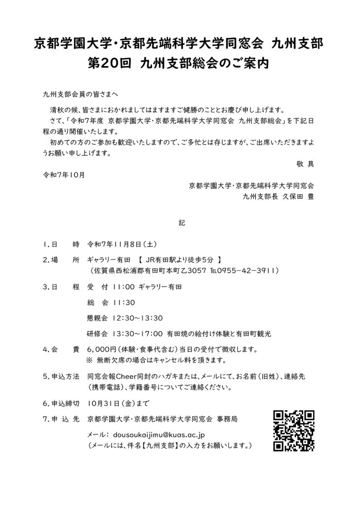 九州地方にお住いの同窓生はもとより、その他の地域の同窓生や出身の方など多数のご参加をお待ちしております。